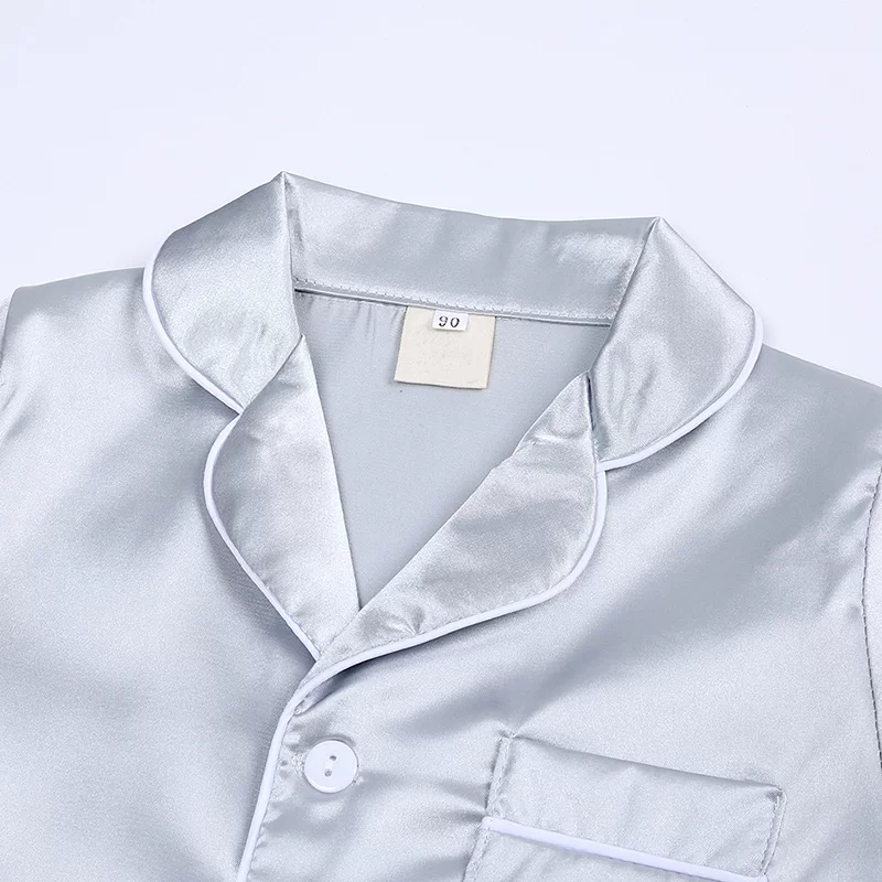 Custom Logo Satin Kids’ Pajamas Set Multiple Colors Available