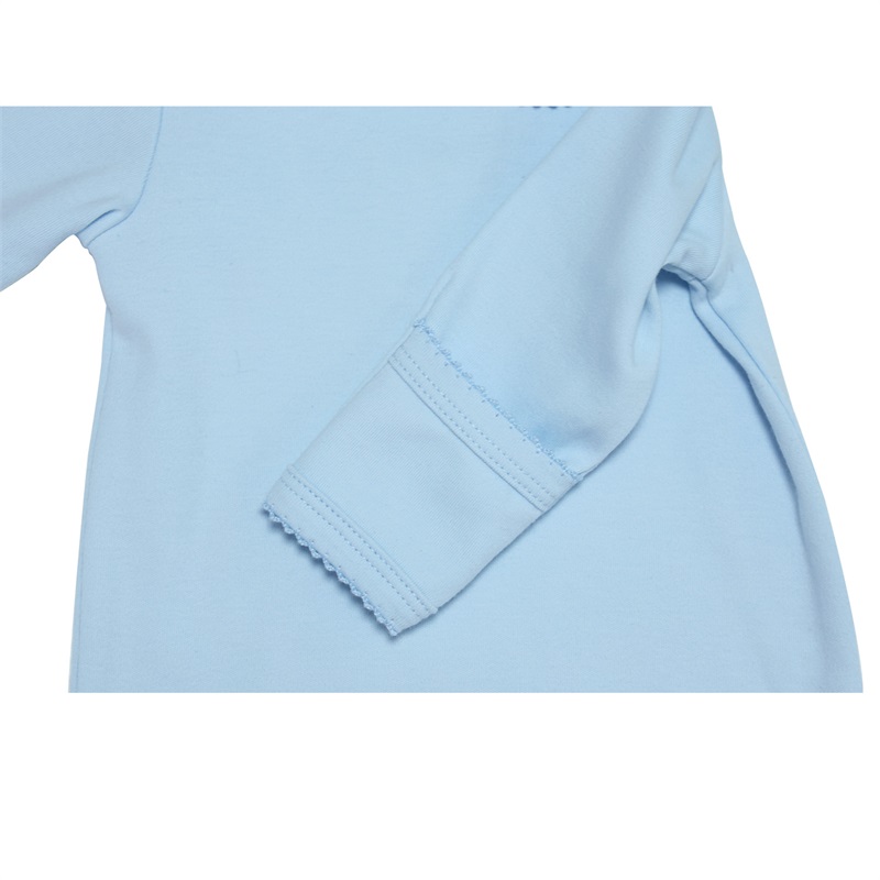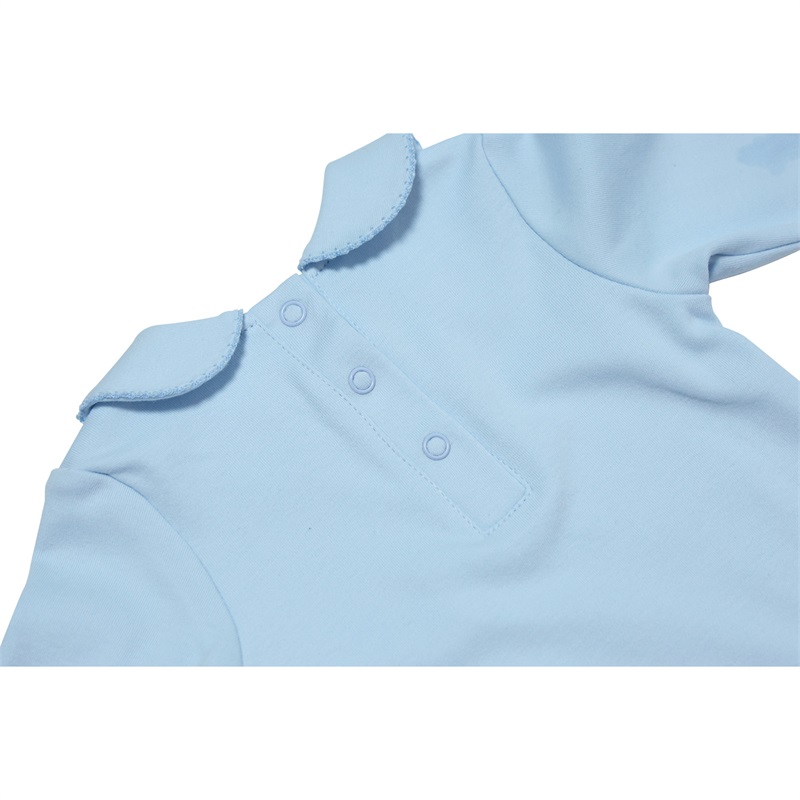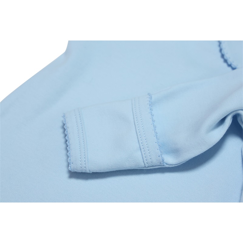 Features a charming picot edge detail along the neckline and sleeves, adding an elegant and sophisticated touch to classic babywear. Perfect for premium and boutique baby clothing lines.