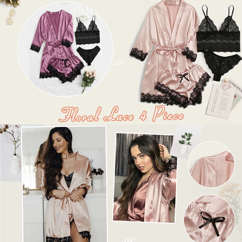 Product Advantage description of Lace-Painted Satin Pajamas 4-Piece Set:
