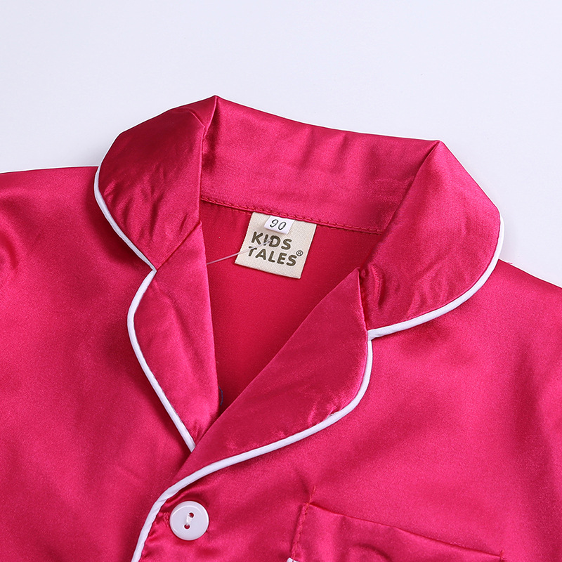Satin kids' pajamas set with a stylish collared design.