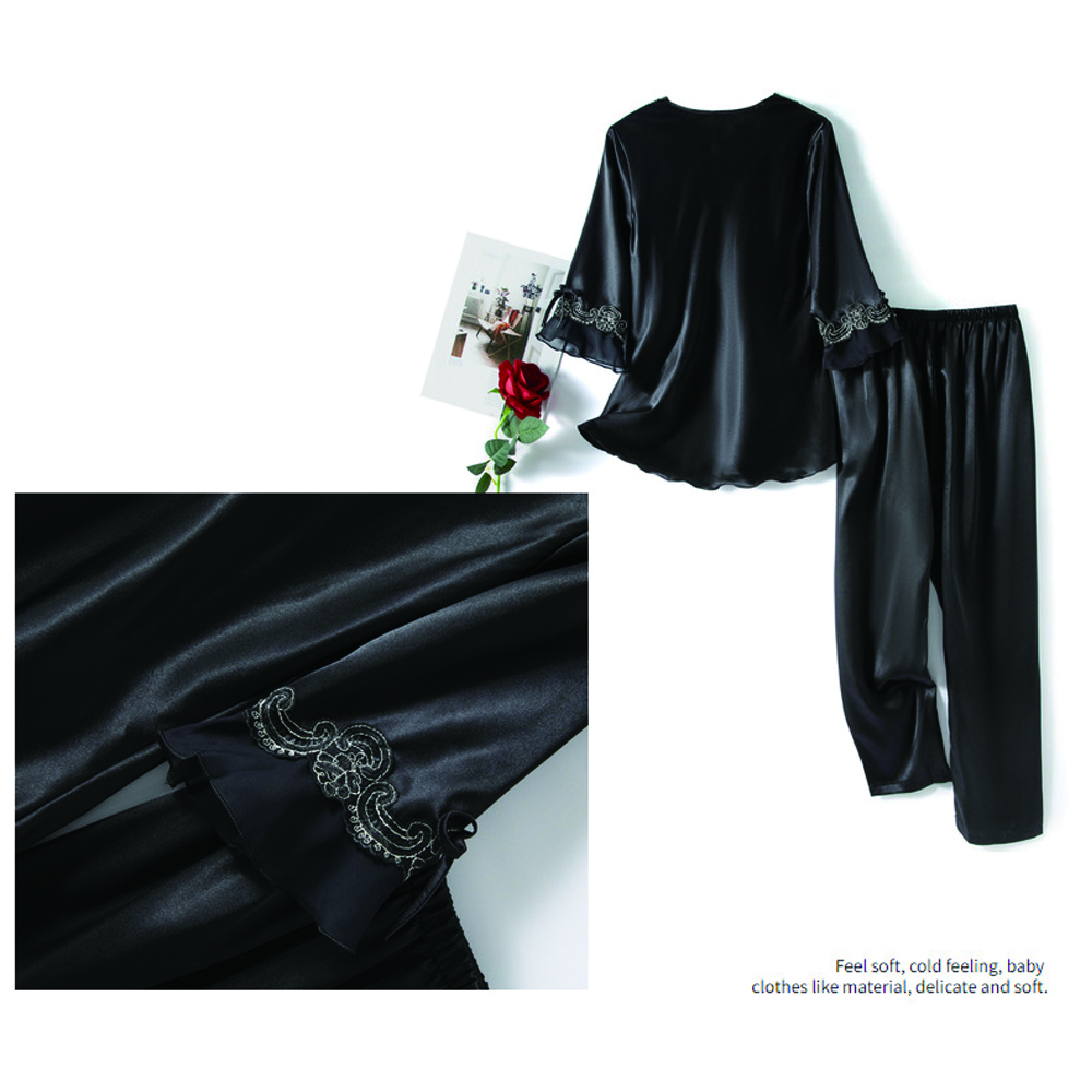 Available in a variety of colors and sizes, our satin pajama set is designed to complement every woman’s style. It is also easy to care for, retaining its softness and shine even after multiple washes.